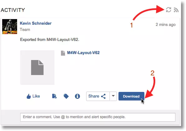 A blue button will appear saying 1 New Post. If you refresh you can see the activity feed will have an event where you can Download the results of the cloud translation. The download will be an F3Z file. Save it to your desktop or another convenient place.