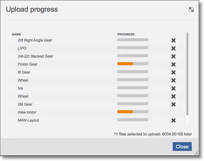 After a few moments the upload dialog will list all the distributed files and will recreate the items and relationships in the new project.