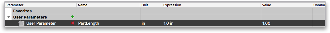 First, lets create create a parameter for PartLength. Make it 1in.