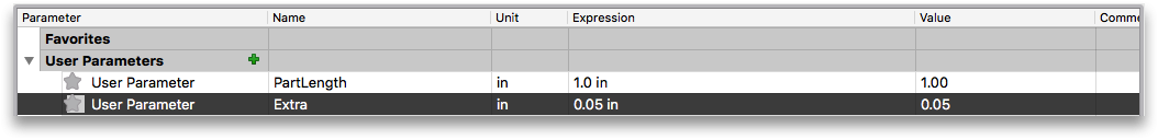 Next, lets make a parameter called Extra. We will make it 0.05in.
